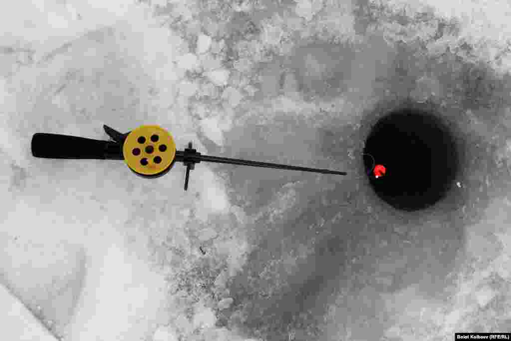 Стандартный размер рыбы при зимней ловле под Бишкеком.