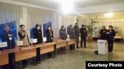 Вот так, под звуки гимна, открывались избирательные участки в Кыргызстане. Фото предоставлено нашим читателем.