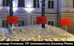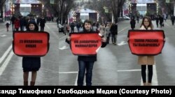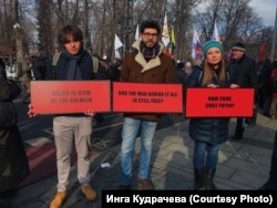 Москва, 25 февраля, активисты с плакатами в стиле "трех билбордов" на марше памяти Бориса Немцова Photo: Инга Кудрачева (Courtesy Photo)