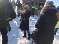 Они вышли на лед Амурского залива в районе Спортивной набережной, начали водить хоровод и скандировать "Свободу политзаключенным" и "Аквадискотека". Полиция наблюдала за ними с берега.