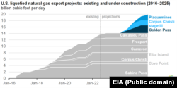 EIA прогнозирует, что, когда вернутся в строй терминалы Freeport, где летом произошла авария (это может произойти уже в ноябре), и терминалы Calcasieu Pass выйдут на полную мощность, американский экспорт сможет достигать в пиковые периоды этой зимы уровней свыше 135 миллиардов кубометров в год.