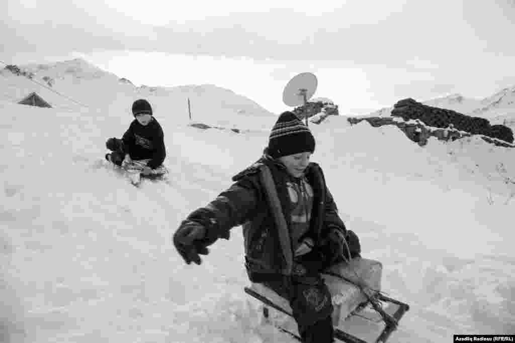 Хыналыг - одно из самых отдаленных и изолированных азербайджанских сел на северном склоне Главного Кавказского хребта. В этой местности проживают всего около двух тысяч человек, и оно известно своим оригинальным языком, обычаями и историей. В 2007 году данная территория указом президента Азербайджана Алиева была объявлена государственным историко-архитектурным и этнографическим заповедником. На фотографиях Джаганхира Юсифа, Азербайджанская служба РСЕ\РС запечатлены юные жители Хыналыга.
