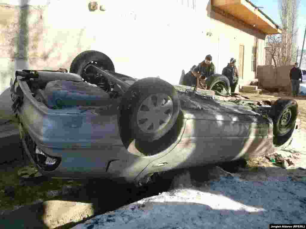 Жители узбекского анклава Сох взяли в заложники граждан Кыргызстана и разбили несколько автомобилей. Недовольство жителей села Хушяр анклава Сох обустройством границы со стороны Кыргызстана в воскресенье вылилось в нападение на кыргызское село. Фото Жениша Айдарова, «Азаттык», Кыргызская служба РСЕ\РС