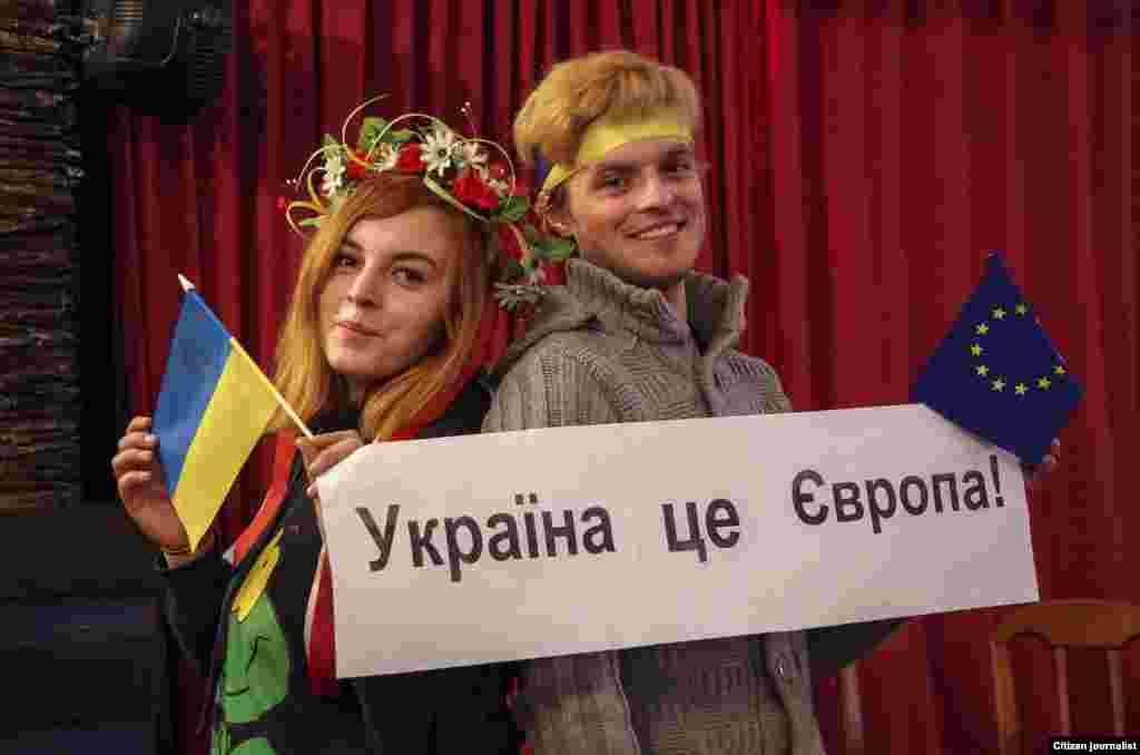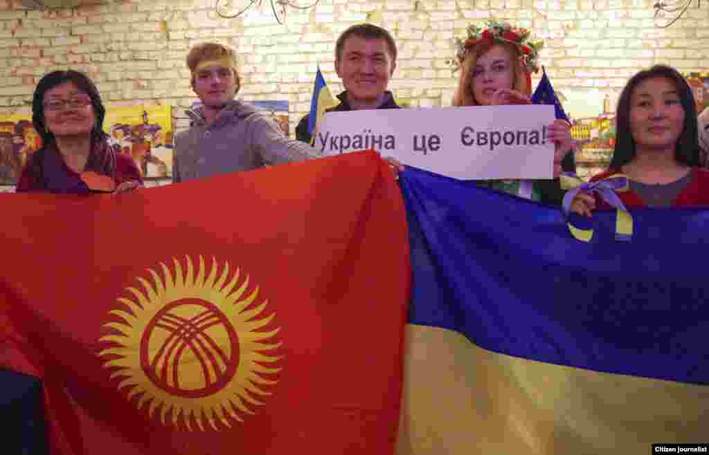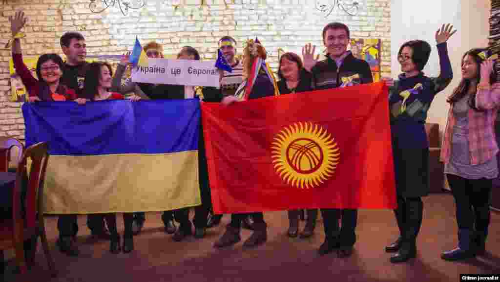 Кыргызстанские блоггеры и гражданские активисты организовали флешмоб в поддержку граждан Украины, участвующих в Евромайдане в Киеве. Фотографии Шайлоо Джекшенбаева.