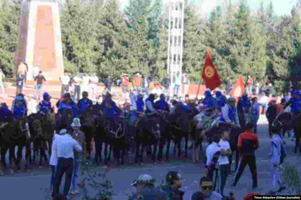 На площади перед зданием полномочного представительства правительства в Иссык-Кульской области с утра проходит два митинга. В одном участвовали около 50 должников банков и микрокредитных организаций, а во втором около 150 недовольных меморандумом, который подписало правительство Кыргызстана с канадской компанией Centerra Gold Inc. Фотографии предоставлены Kloop Media Foundation, авторы фотографий Кундуз Сырдырбаева и Тимур Акбашев.
