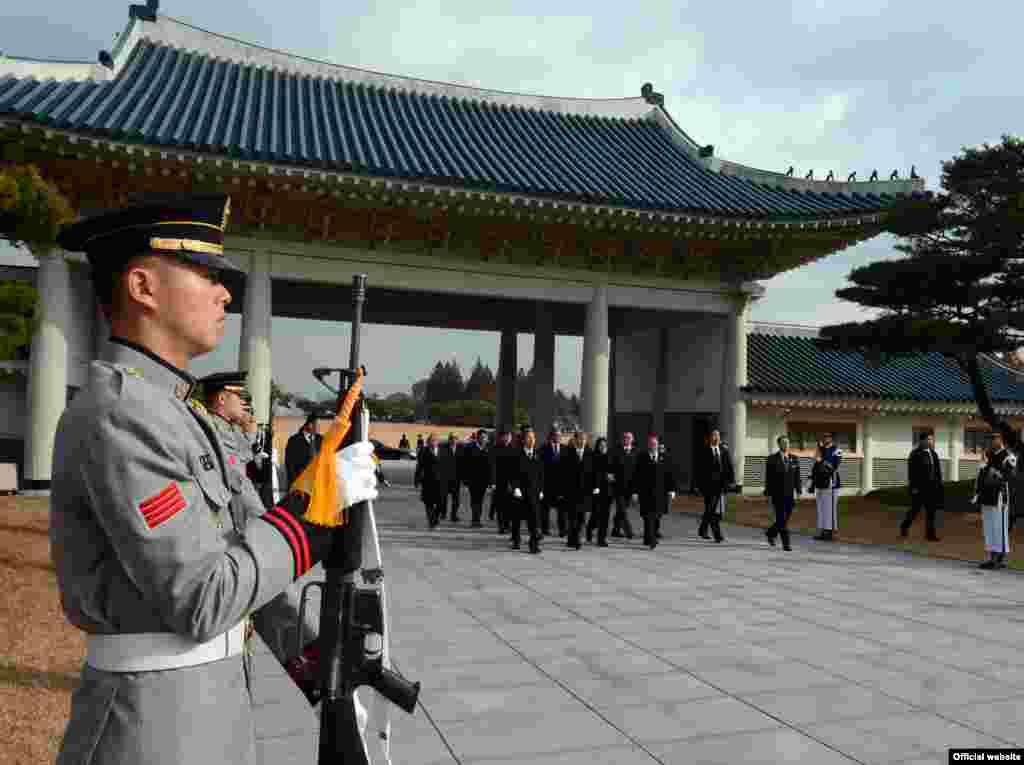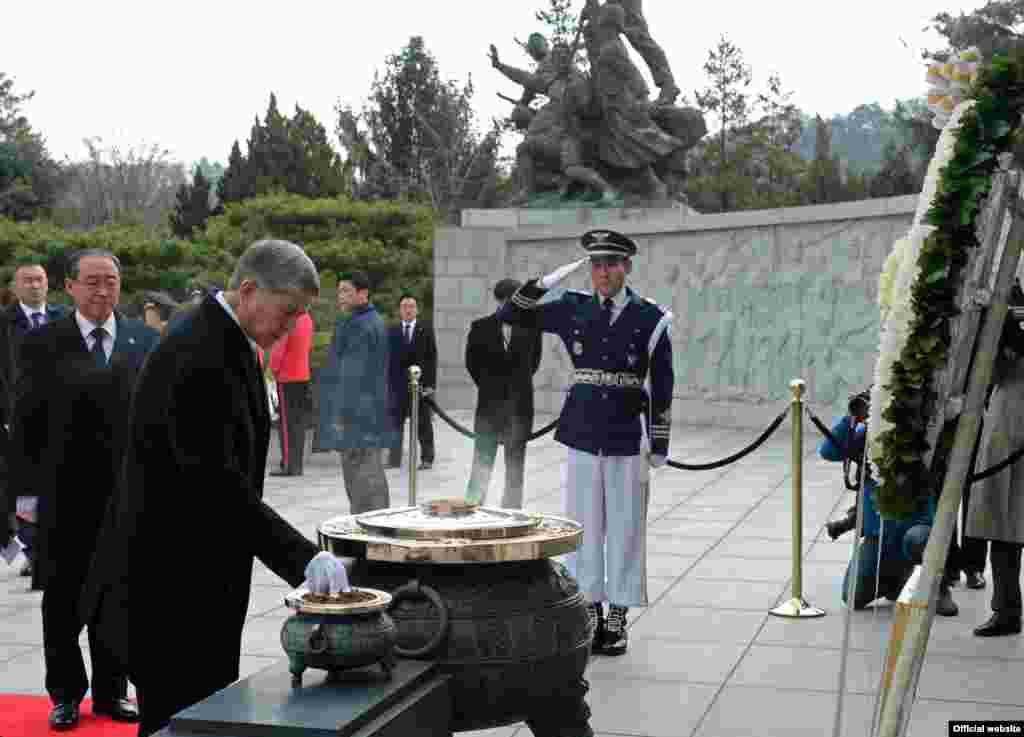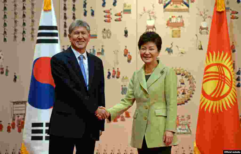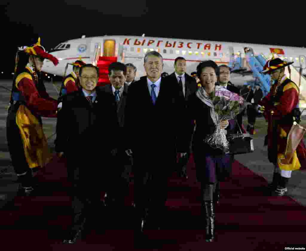 Президент КР прибыл с официальным визитом в Республику Корея. Атамбаев проведет встречи с президентом Республики Корея Пак Кын Хе, спикером Национальной Ассамблеи Канг Чанг Хи, председателем Экспортно-импортного Банка Ким Енг Хваном, председателем Комиссии по антикоррупционным мерам и защите прав человека Ли Сунгбо, а также примет участие в кыргызско-корейском инвестиционном форуме. Это первый визит главы кыргызского государства в Сеул. Фото пресс-службы президента КР.