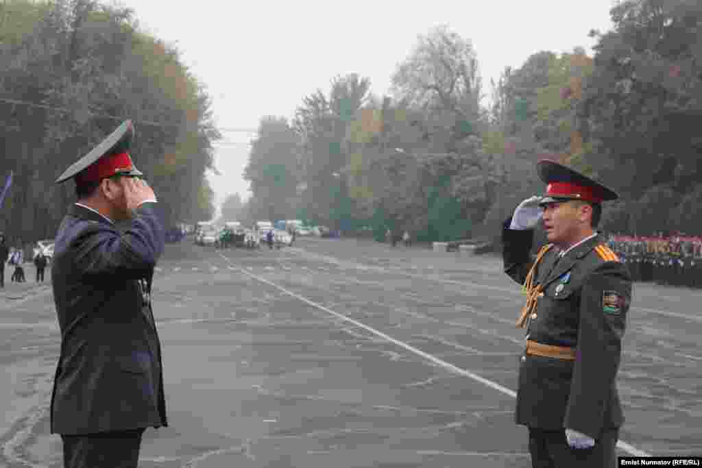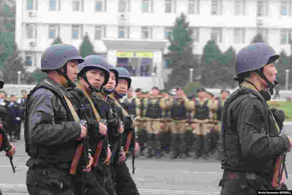 В Оше, на центральной площади 1 ноября состоялся торжественный парад сотрудников правоохранительных органов в честь профессионального праздника. В этом году кыргызской милиции исполняется 89 лет. Глава правительства КР Жанторо Сатыбалдиев, выступая на торжественном собрании, посвященном этой дате в Бишкеке, пообещал, что с 2014 года будет повышена зарплата милиционерам. "Азаттык", Кыргызская служба РСЕ/РС