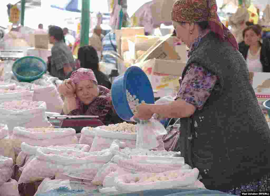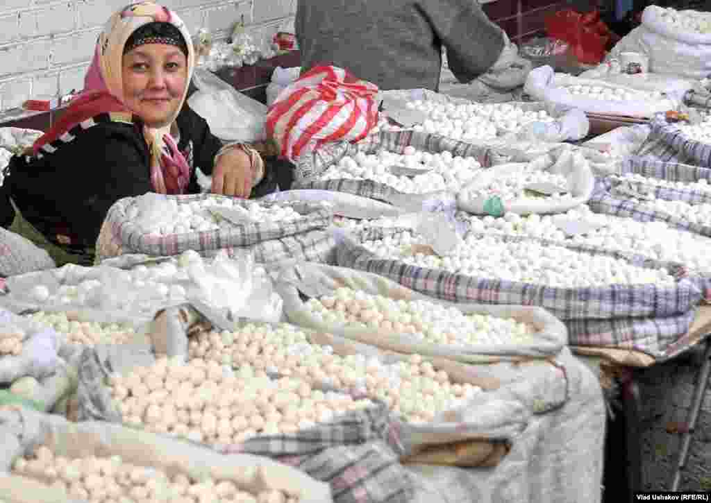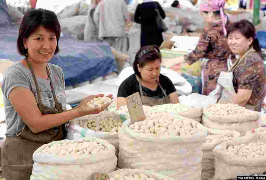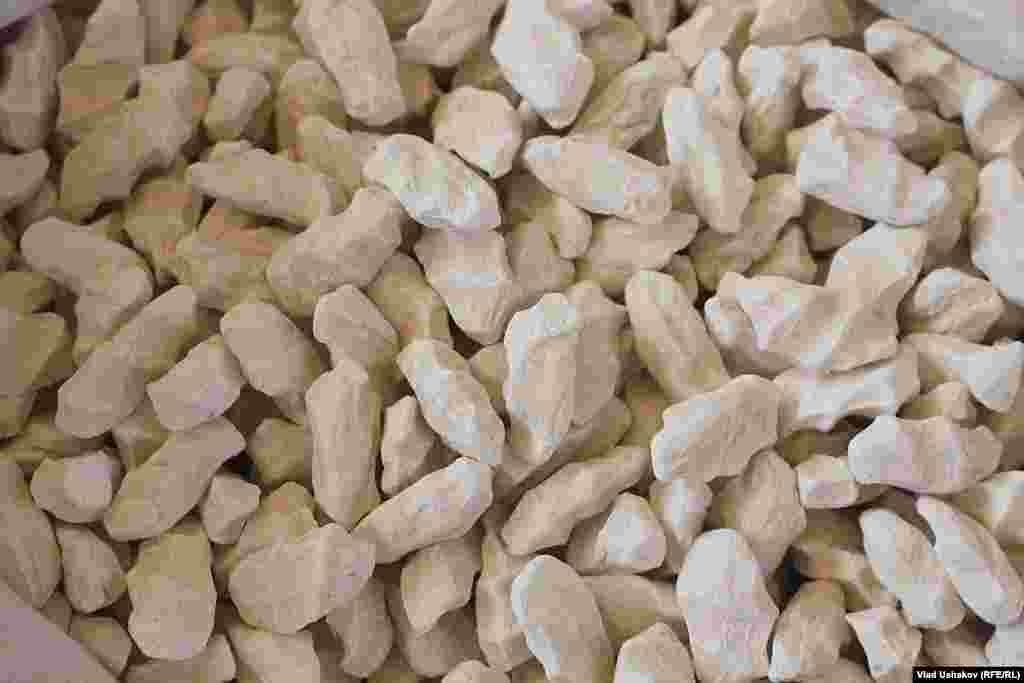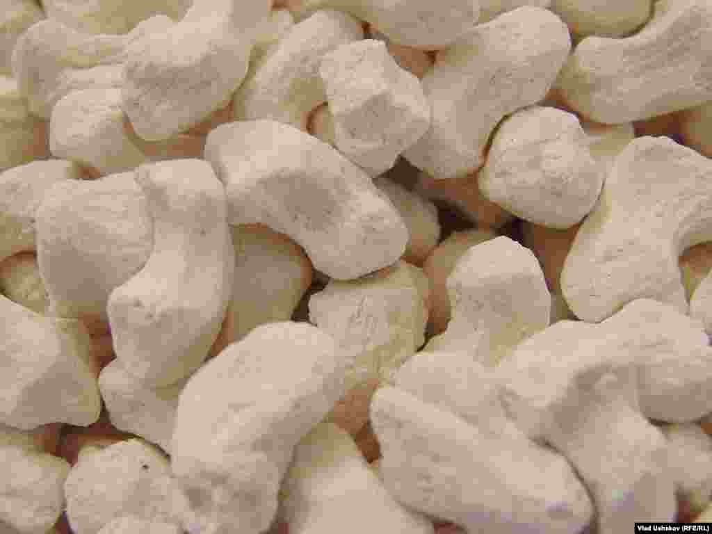 Пожалуй один из самых распространенных продуктов питания на просторах Азии. Это засушенные соленые шарики, приготовленные из густой закваски кислого молока. Чаще всего это коровье молоко, но в зависимости от региона может меняться состав продукта. Правильно приготовленный курут может храниться более 7-8 лет. Зимой его размачивают в кипятке и подают в подогретом виде с топленным маслом. Фотогалерея Влада Ушакова, Кыргызская служба РСЕ\РС