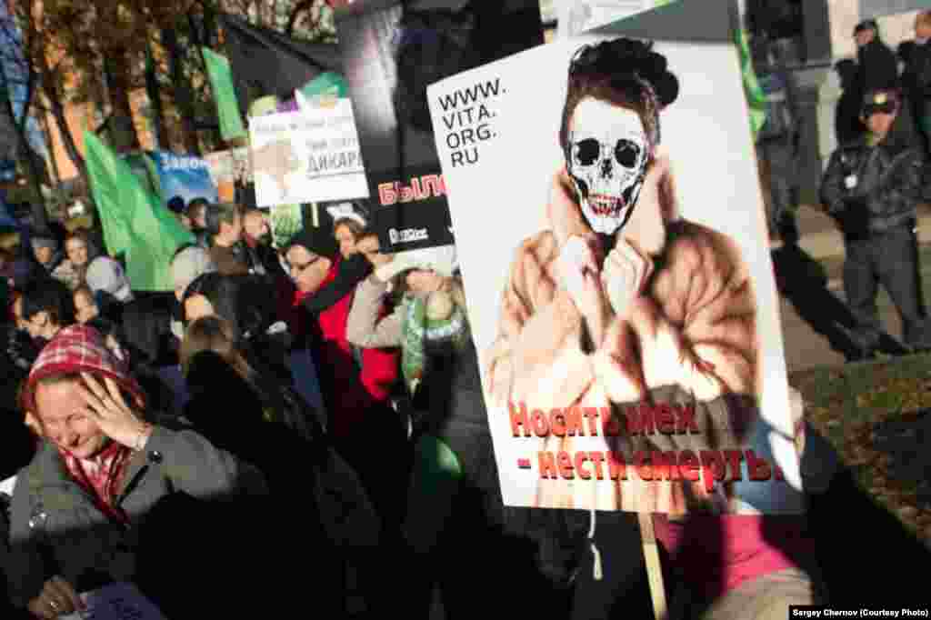 В России растет движение в защиту прав животных. Его участники, в частности, выступают против использования натурального меха в швейной промышленности. В октябре во многих городах России прошли театрализованные акции, напоминающие об ужасах, которые ожидают зверей, попавших в руки скорняков. Одно из таких представлений центр "Вита" провел в Петербурге. 29 ноября в Москве по Самотечной улице пройдет демонстрация, приуроченная ко Всемирной Антимеховой Пятнице, которую отметят более чем в 80 городах по всей планете. Русская служба РСЕ/РС