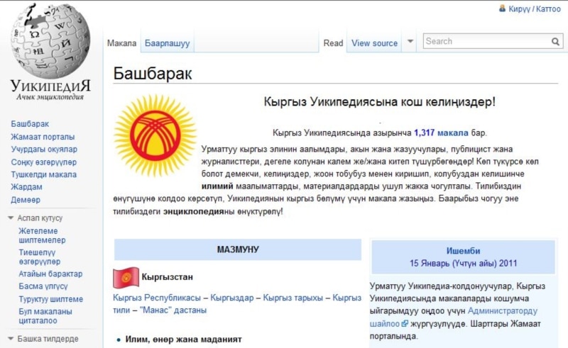 Wikipedia на кыргызском языке.